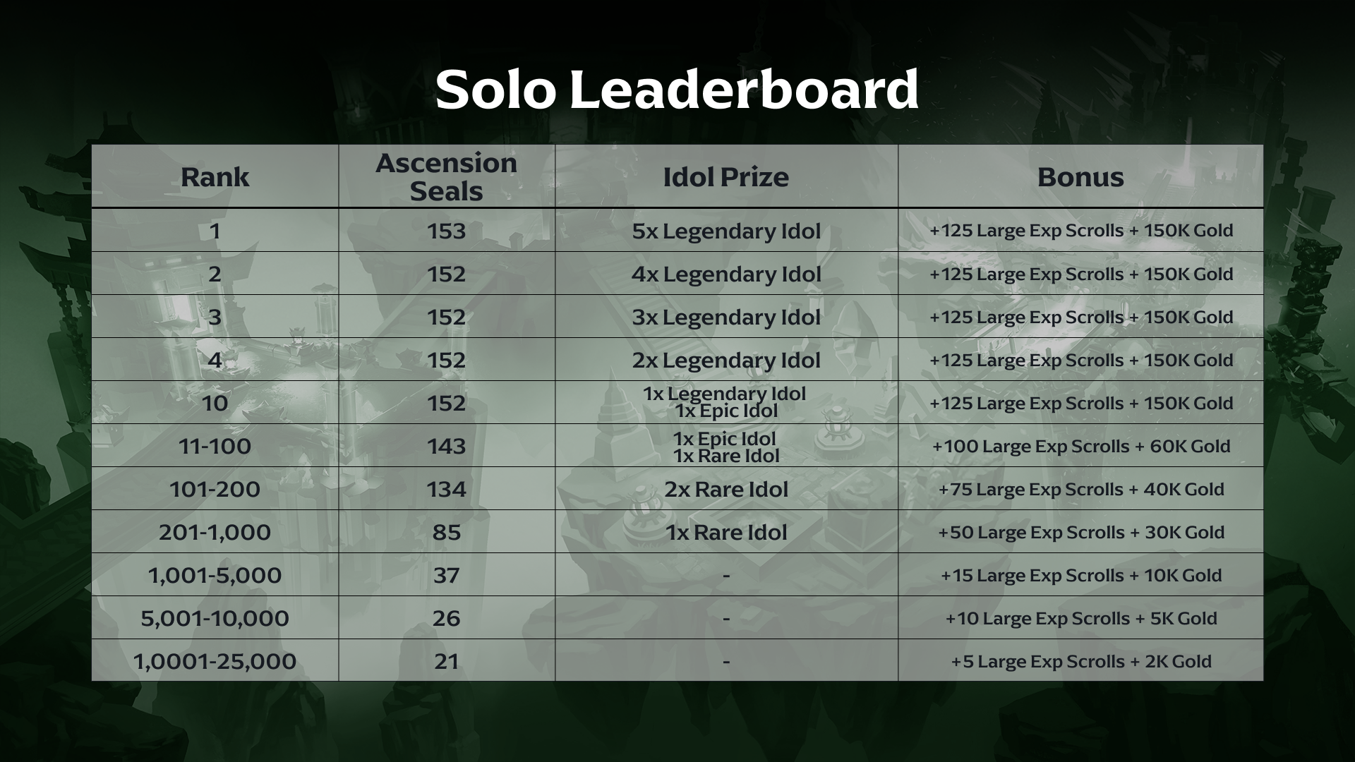As a token of our sincere appreciation and good-will to the community, we have decided to enhance the Rewards for the Special Event Leaderboards with bonus rewards. This includes additional Web2 rewards for Solo Leaderboards, and expansion and enhancement of web3 rewards for Guild Leaderboards. These rewards will be distributed after the conclusion of the event, pending anti-bot checks and verification.