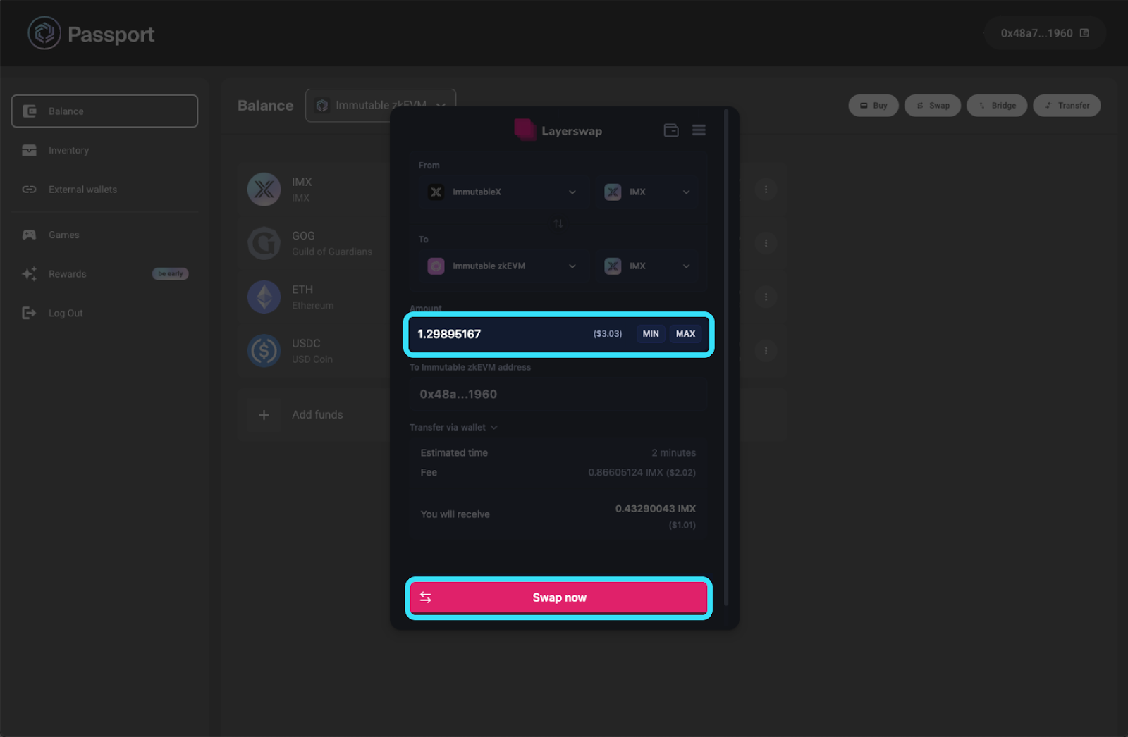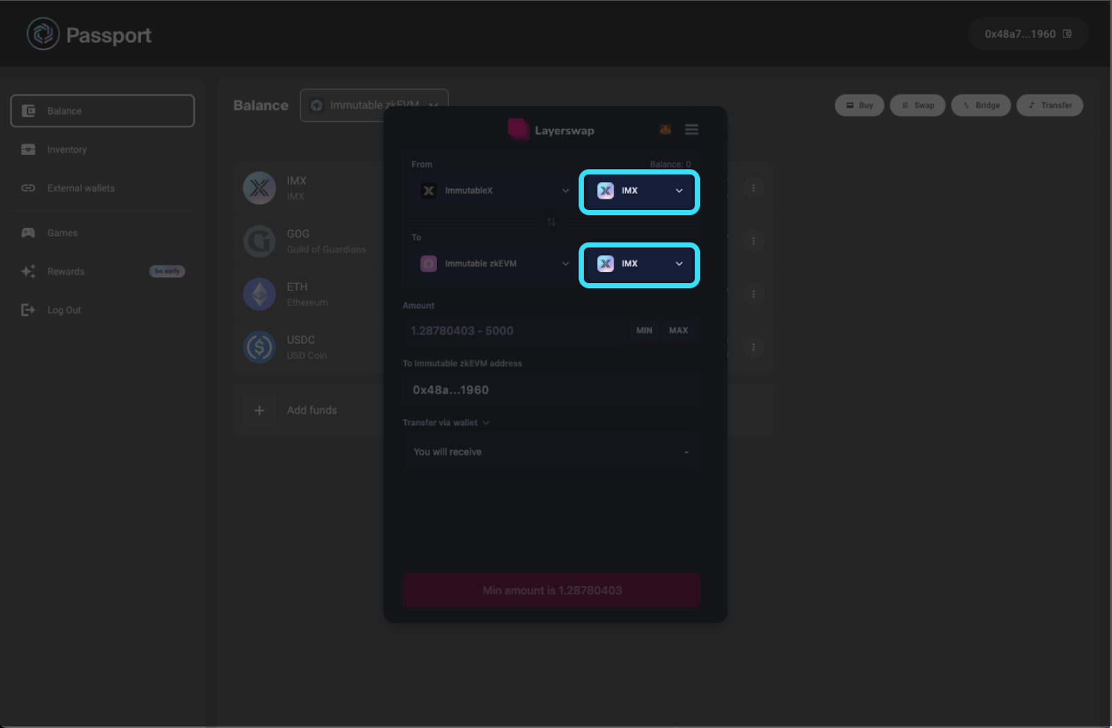 - Use Layerswap in Immutable Passport to move funds