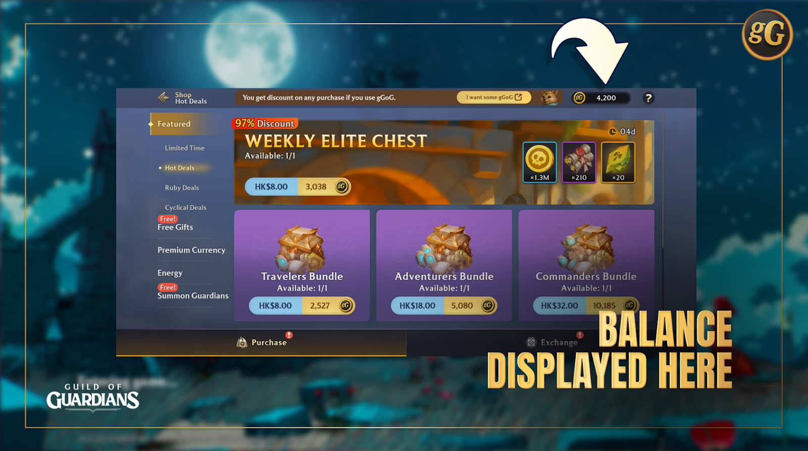 gGoG is your new universal in-game currency for Guild of Guardians, which opens up exclusive offers and perks to all players. During the initial rollout, players will be able to swap their $GOG for gGoG, unlock and purchase exclusive offers in-game, as well as set Rental prices with gGoG.
