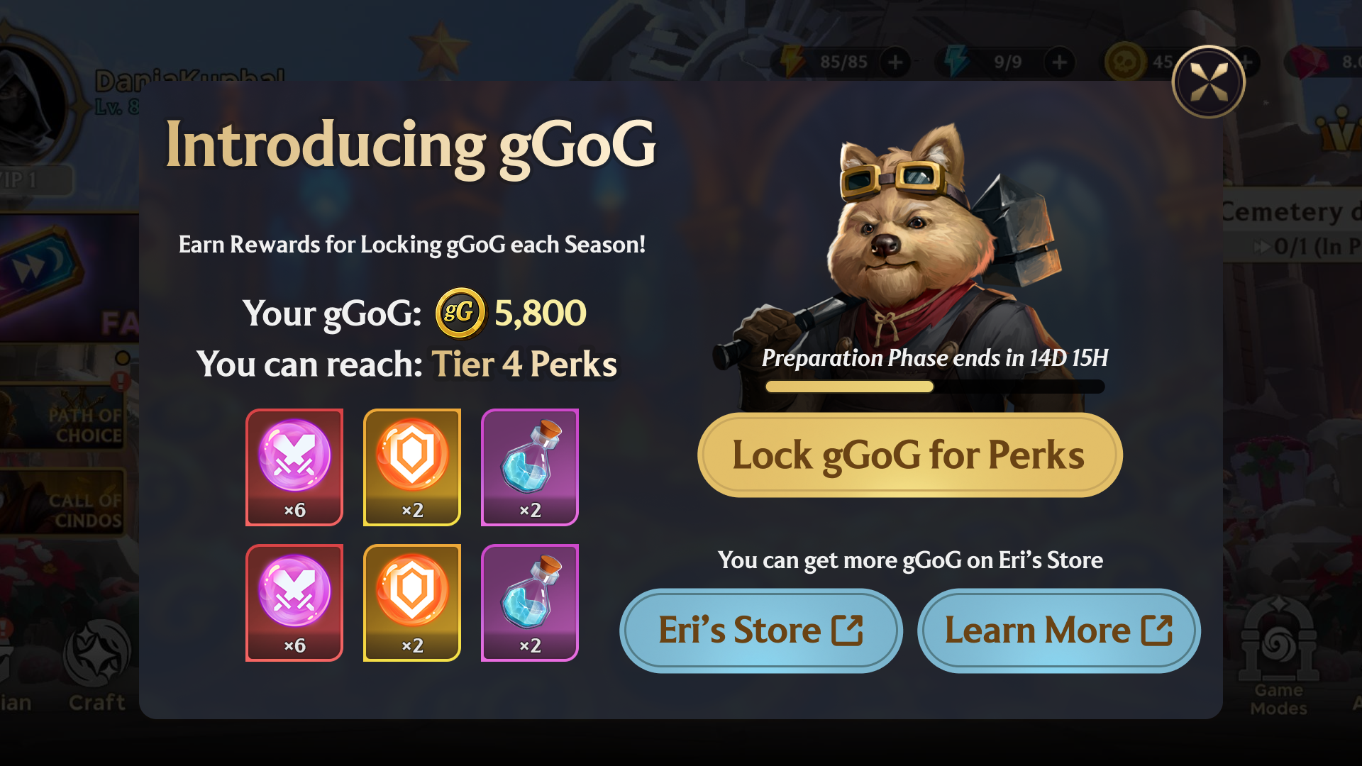 - You’ll need have sufficient gGoG for passives rewards, as well as to purchase perks