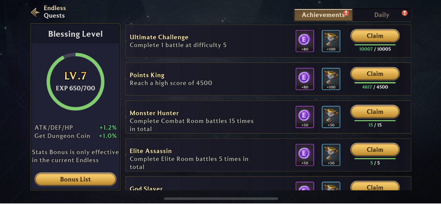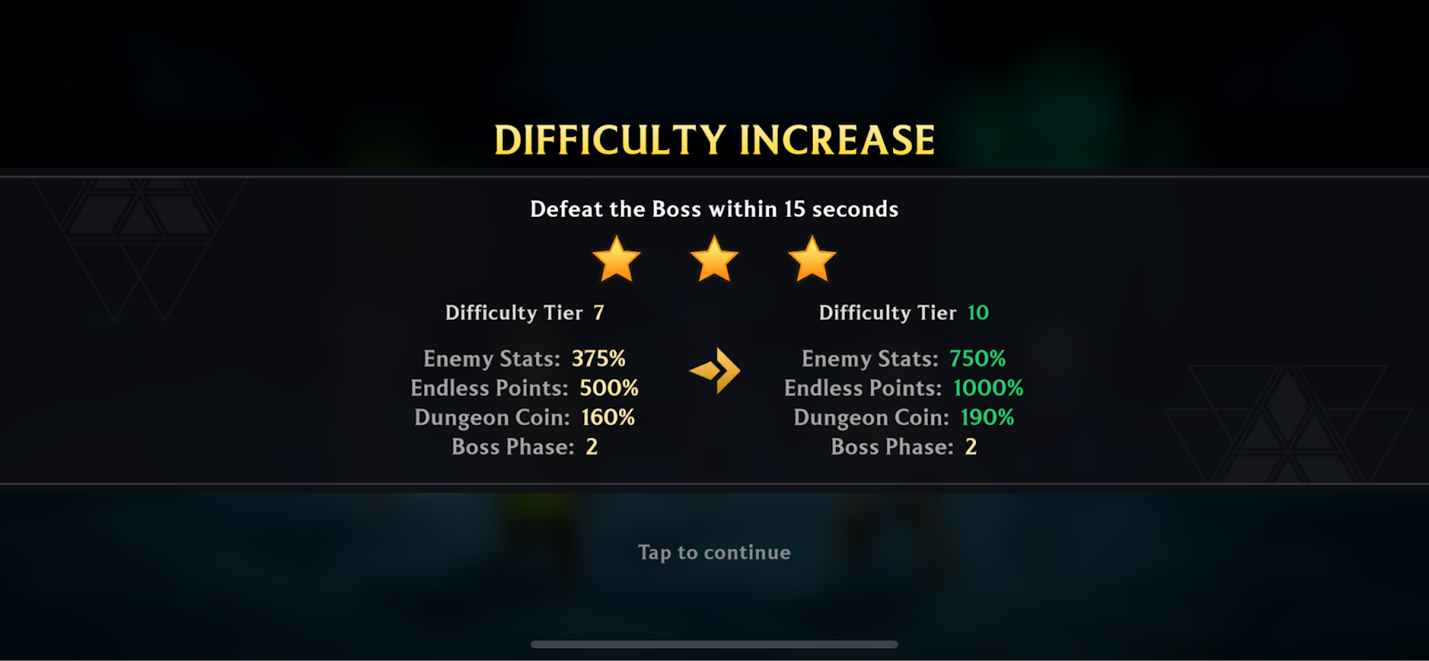 - Endless Points: The percentage gain of Endless Points players earn for this next phase of the Dungeon.