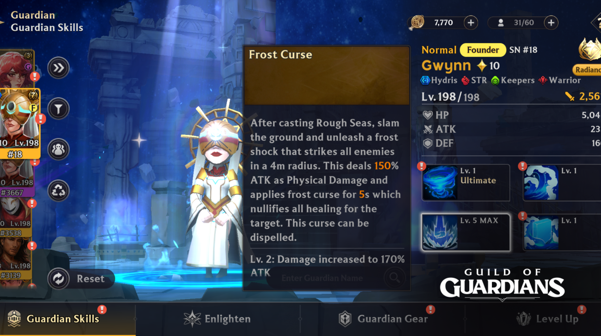 Gwynn is the first Guardian featured in this new upgrade path, meaning she becomes eligible to ascend from Epic to Legendary using the Legendary Potion. Upon reaching Legendary rarity, Gwynn gains access to expanded progression and an additional Legendary-only skill that fundamentally enhances her combat presence.