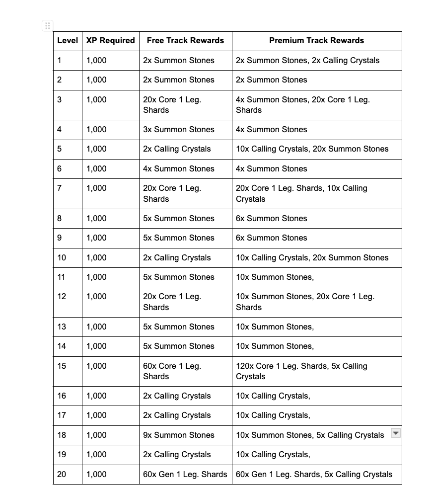 - Premium Pass ($29.99) – Loaded with extra Calling Crystals, Shards, and Summon Stones